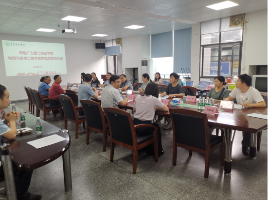 2021年422日下午,广东第二师范学院物理与信息工程学院杨飒院长一行9人,到电子工程与智能化学院交流座谈,座谈会在电子楼8A207会议室举行,电子工程与智能化学院党委书记兼执行院长胡耀华、副院长宋跃、副院长任斌、副院长胡君,以及电子信息工程系相关负责老师出席了本次座谈会,会议由宋跃主持。