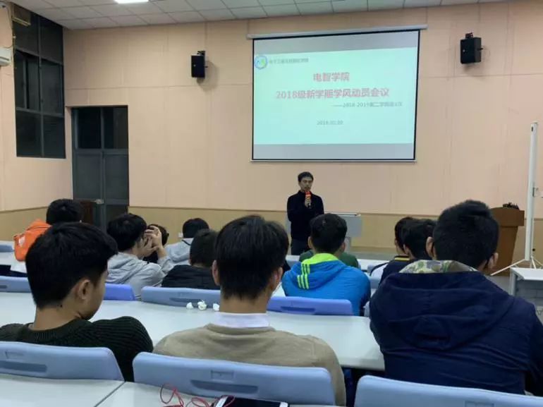 会上,袁老师通报了18级上学期总体学业情况,提出新学期的学风建设要求,向同学们讲解学业预警的具体要求,并着重强调如果预警达到一定科目,未来会影响学士学位证和毕业证的的发放,此外,袁老师对于即将到来的补考周,提醒补考的同学早做准备,并邀请17级通信2班陈灿凯同学进行学习经验分享。