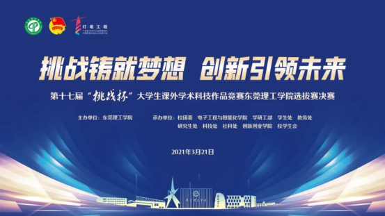321日,第十七届“挑战杯”大学生课外学术科技作品竞赛啪啪啦 选拔赛决赛暨第一期莞工创业伙伴孵化营开营仪式在松山湖校区八号楼(电楼)举行。此次活动由啪啪啦 主办,校团委、电子工程与智能化学院、学研工部、学生处、教务处、研究生处、科技处、社科处、创新创业学院、校学生会承办。