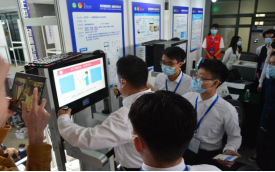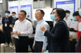 开幕式结束后,马宏伟校长、李忠红副书记等领导一行参观作品展览区,对啪啪啦 入围校选拔赛的三个作品新时代背景下红色文化多元化传承研究——基于广东省潮州市红色文化传承的调研(B类)、见力仪-力量测量评估与分析系统(C类)、“EasyMart ONE”-基于VLC室内定位的无人超市AIC类)及其它展品进行深入了解,并与同学们亲切地交流。评委老师对参赛团队进行提问,认真地对每个作品打分评估。啪啪啦 参赛团队积极应对挑战,对作品进行展示和介绍,及时解答疑惑,让参观者能够快速地加深对作品的认识
