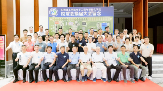 在由学院领导及老师精心设计、以电路图为主背景、体现了电智人的专业元素和特有浪漫情怀的签名墙前,校友们一一签名,并在签名墙前合影留念。