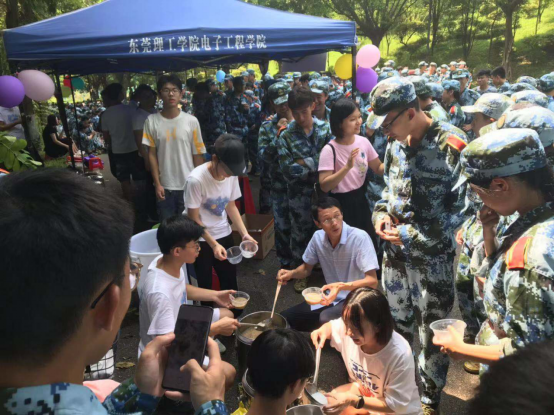 虽是初秋,烈日当空。9月10日上午,电子工程与智能化学院党委书记邓成良和全体辅导员、新生班主任来到真草训练场对同学们进行慰问,并为在军训中努力训练的学子们“送清凉”。