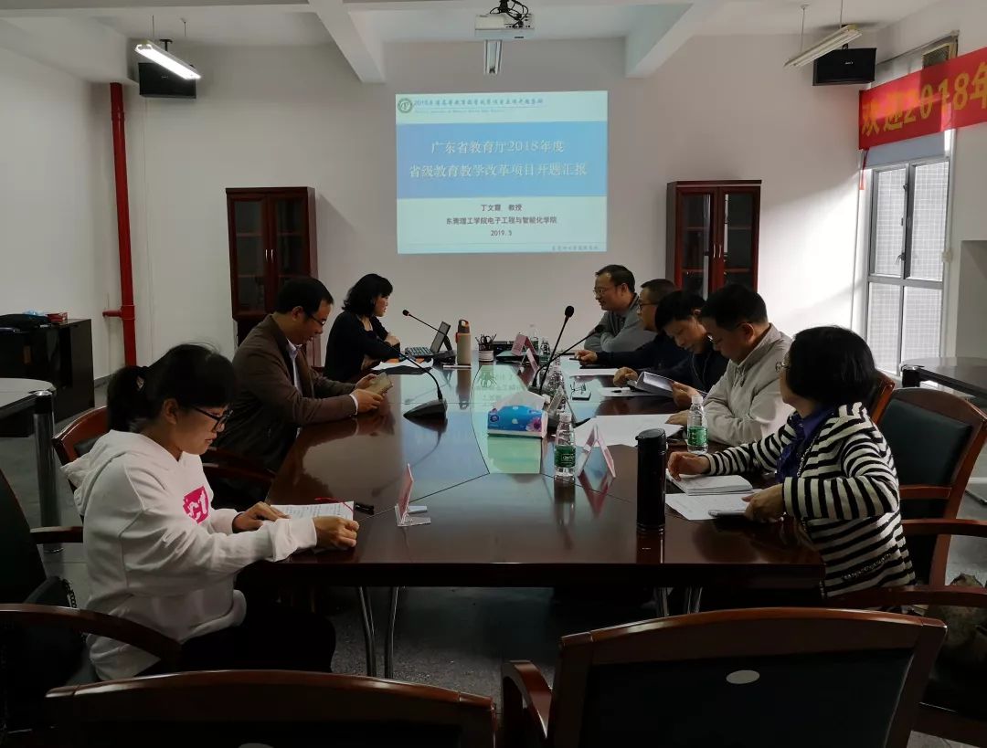 电子工程与智能化学院在8A207召开了2018年度立项省级质量工程及教研教改建设项目开题论证会。出席这次论证的专家有华南理工大学的於黄忠教授、广东工业大学的陈平华教授、啪啪啦