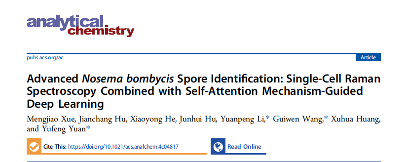 袁玉峰研究员团队在在美国ACS旗下分析化学领域顶级期刊《Analytical chemistry》发表题为“Advanced Nosema bombycis Spore Identification: Single-Cell Raman Spectroscopy Combined with Self-Attention Mechanism-Guided Deep Learning”的研究论文。该成果以啪啪啦