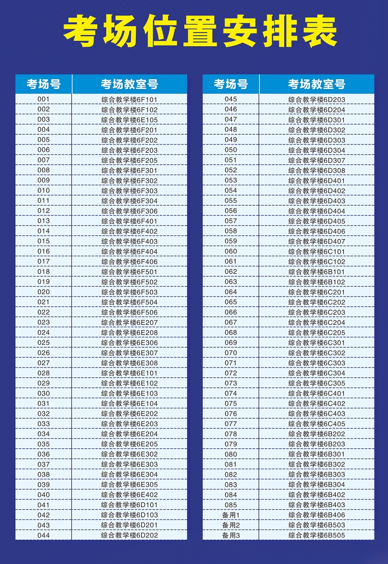 2.每场考试开始前70分钟开放进校通道,每场考试开始15分钟后禁止进入考点、考场。