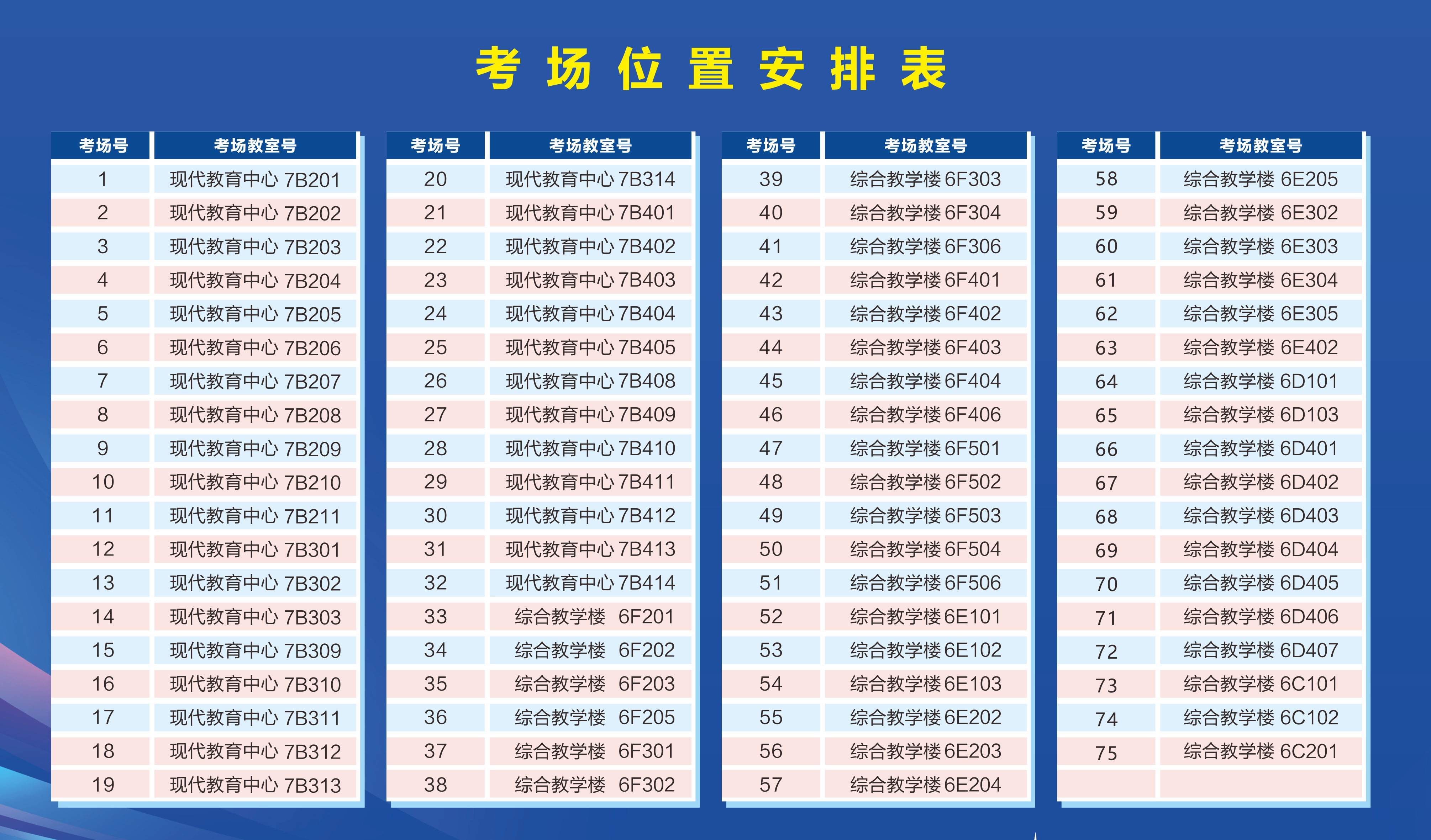(松山湖校区),具体考场安排表详见下图,或下载附件1。