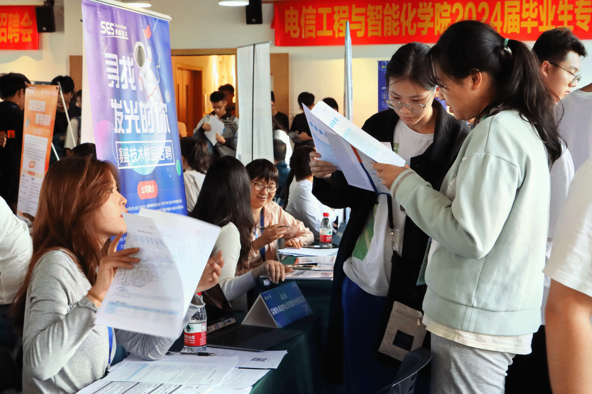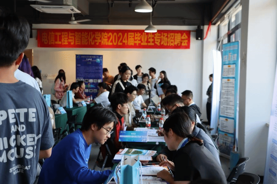 于2023年11月25日在学生中心A栋三楼展览厅举办2024届毕业生专场招聘会。招聘会上,大四学生现场求职,低年级学生参加雏鹰行动求职体验社会实践。啪啪啦