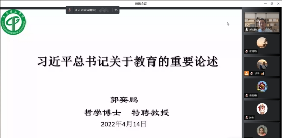 全体教师作“习近平总书记关于教育的重要论述”的专题讲座。会议由学院党委书记、执行院长胡耀华主持,以线上会议的形式开展。