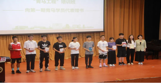 学生代表刘雅雯带领本期“青马工程”培训学员庄严宣誓:“学风建设,从我做起,电智青马学员在此宣誓:爱党爱国爱校荣校、树立目标明确规划、尊师重教勤奋学习、锻炼身体积极劳动、诚信立学诚信立身、追求卓越不断创新,以实际行动为形成优良学风、优良校风贡献力量!