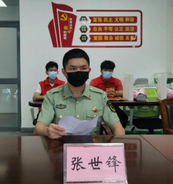 退伍在校生代表张世锋,将自己用教训换来的经验,毫无保留地分享给入伍新兵:一是军人也是人,也会犯错,不找理由,勇于认错;二是有活抢着干,不去计较有没有人看到你的付出;三是纪律是块铁,谁碰谁流血,纪律是块钢,谁碰谁受伤;四是见第一就争,见红旗就扛,永不满足现状,不断挑战自己;最后要多给父母打电话,他们是这个世界上最爱你的人。