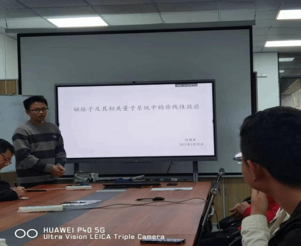 3月30日下午,学科成员刘增星博士在学科会议室8B214B分享了题为“磁振子及其相关量子系统中的非线性效应”的学术报告。报告会由孙敬华教授主持,学科教师及部分研究生参加本次会议。