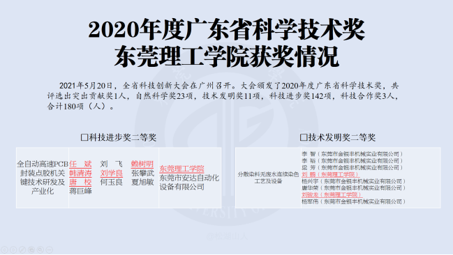 和东莞市安达自动化设备有限公司完成的“全自动高速PCB封装点胶机关键技术研发及产业化”荣获广东省科学技术奖科技进步奖二等奖,啪啪啦