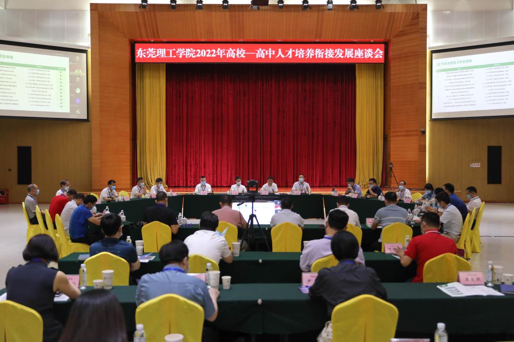 2022年高校—高中人才培养衔接发展座谈会在学术会议中心举行,本次会议以线上线下相结合的方式开展。学校党委书记成洪波、校长马宏伟、副校长杨敏林,东莞市教育局副局长邓柏松出席了会议,广东省内50多所优质生源基地中学校长及教师代表参加会议。