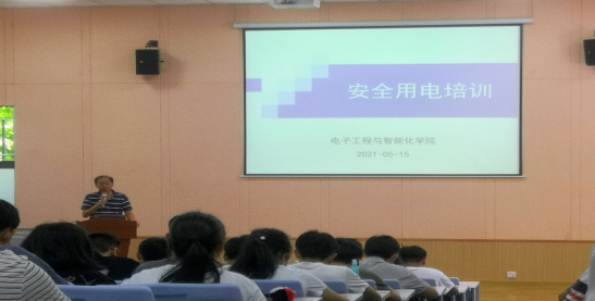 王彩申、雷瑞庭、林盛鑫老师做了6场关于安全用电、树立安全意识的培训, 让同学们通过培训学习安全用电基本知识,掌握常规触电防护技术,从而保证用电安全。会上,老师们强调在日常生活和学习中,要注意排查用电安全隐患,消灭事故的源头,减少事故的发生。当事故发生时,我们要采取正确的方法和措施,从而减轻人员受伤害和财产损失程度。
